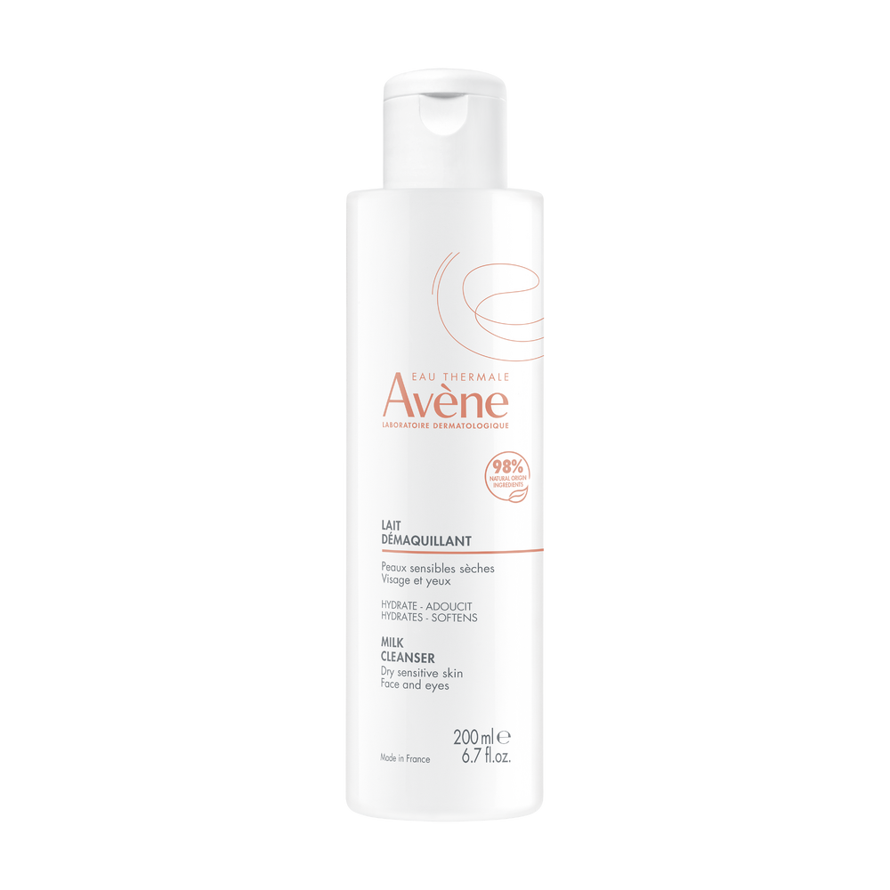 Ce lait doux démaquillant nettoie, hydrate* et apporte du confort aux peaux sensibles sèches et très sèches. Il réduit les sensations d'inconfort, le démaquillage devient un moment de plaisir. Il améliore l'hydratation et préserve l’équilibre naturel de la peau grâce à sa haute concentration en Eau thermale d'Avène aux propriétés apaisantes. Ce lait au parfum délicat démaquille et apporte douceur en un geste simple et rapide, avec un fini non-gras. Sa formule intègre le minimum d'ingrédients à la juste dose pour garantir efficacité dermatologique et tolérance**. Convient aux porteurs de lentilles. Composition à 98% d’ingrédients d’origine naturelle et sans ingrédients d’origine animale. La peau est nette, douce, apaisée et confortable. L'emballage du Lait démaquillant 200ml contient 84% de matières recyclées. Le flacon est en plastique 100% recyclé***.